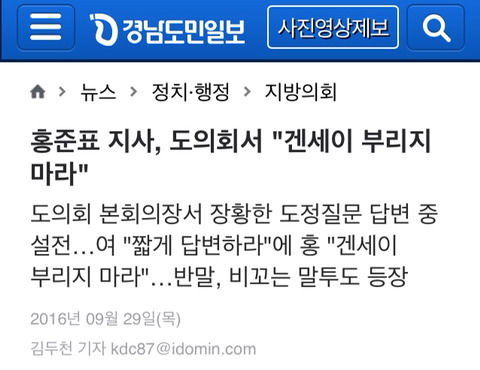 뿌리 깊은 겐세이 주저리주저리 조회 0 원본보기 0 인기도 점수 0 0 요약 뿌리 깊은 겐세이 - 2009.02.23 국회 문광위 당시 정병국 한나라당 의원 (현 바미당 의원) - 2016.09.28 경남도의회 당시 새누리당 소속 홍준표 경남지사 - 2018.02.27 국회 교문위 자유한국당 이은재 의원 원본 페이지로 이동 추천 콘텐츠 나현선 0 여아이돌 숨겨진 꿀몸매녀.gif 0 즉석 떡볶이 뷔폐 0 누구징? 0 김치로 때리는 아침드라마 0 중국 유튜버의 메이크업 실력 0 관련 이미지 조현영 하얀 드레스 124 씨스타 ㄷㄷㄷㄷ 125 아옳이가 누구죠? 162 이번엔 다혜 앞태 88 베스티 다혜 뒤태 92 선명한 그 자국 122 마리텔 신수지 111 몸매쩌는 농수산 윤지 216